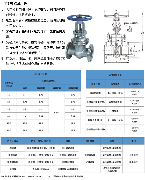 國標閘閥適用于石油、化工、冶金、電力、造紙、制藥、食品、水處理、石油、化工、火力電站等各種工況的管路上,切斷或接通管路介質。 適用介質:水、油品、蒸氣等..